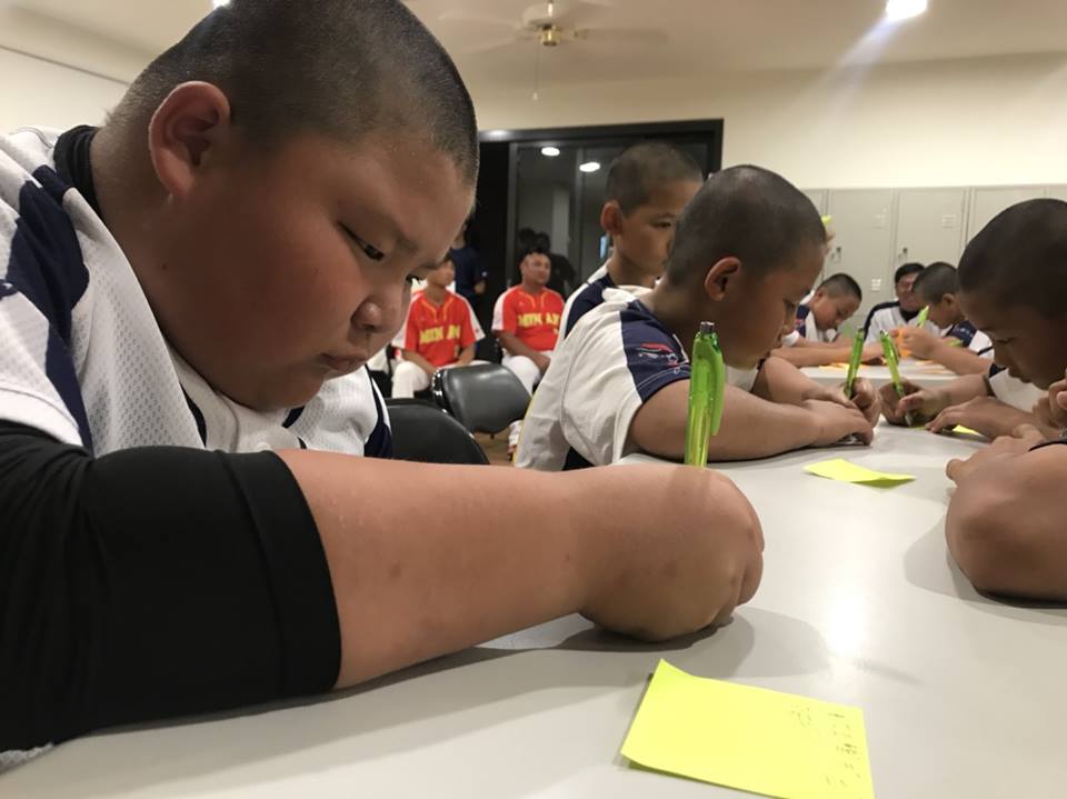 這次移地訓練中我們增加「賽後PILOT正向引導課程」,邀請專業Pilot講師在比賽時紀錄孩子的情緒變化與做決定的過程,賽後再將記錄回放和小將們討論。