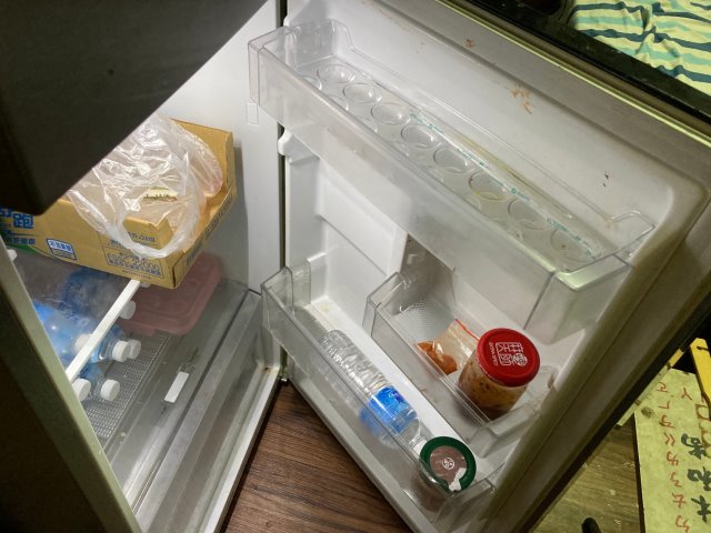 ▲打開小慎家的冰箱,裡頭剩水跟飲料,父子平常就吃冷凍水餃和泡麵果腹。