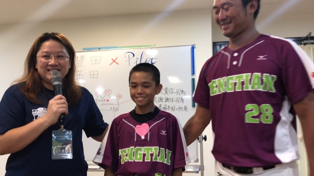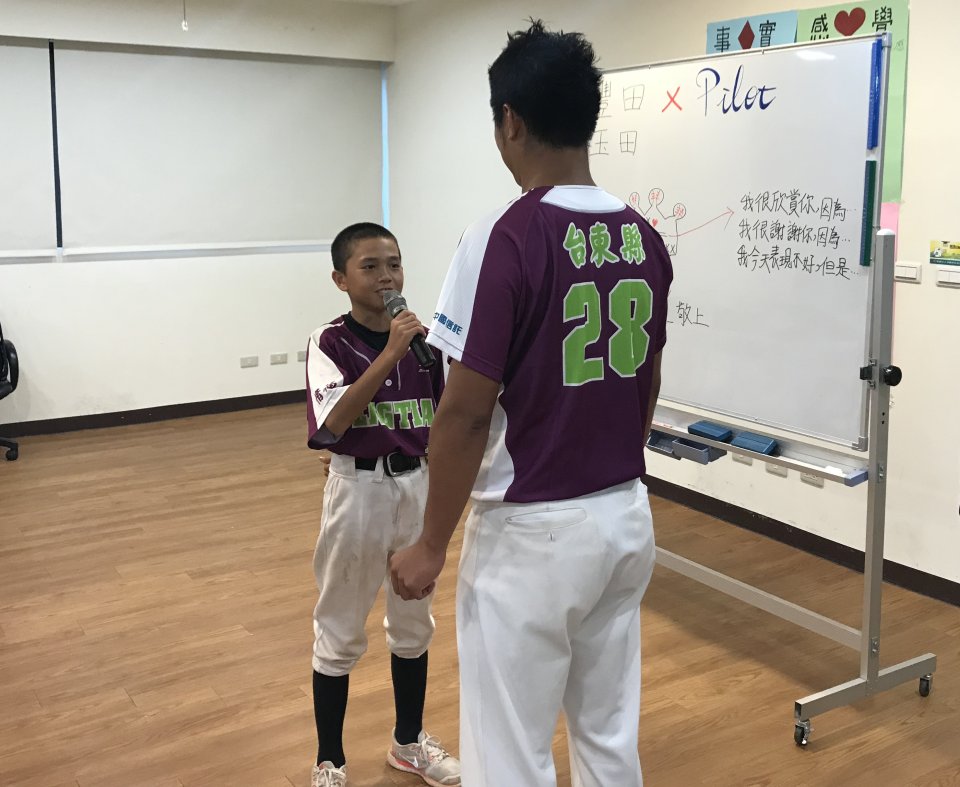 來自豐田國小的張柏恆小球員在課程結束後,大喊:「我剛剛超感動的,差點就要哭了!」