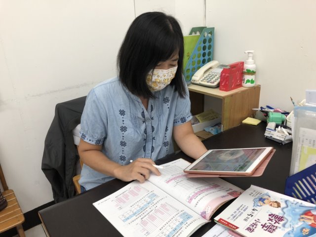 ▲為了增加收入,張玉枝目前也在安親班兼課,陪伴中低年級的孩子完成作業。