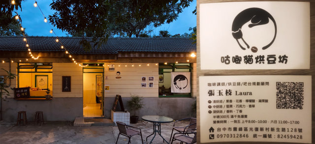 ▲「咕唧貓烘豆坊」位於台中霧峰光復新村裡,外觀裝潢具有獨特氣息。