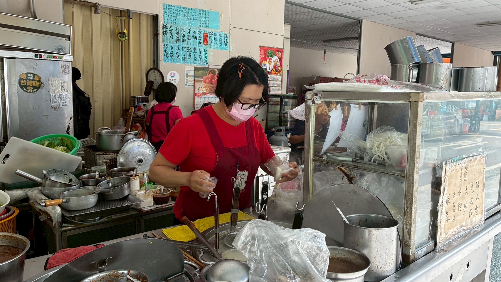 ▲淑芬在麵攤裡忙進忙出,不時還要照應旁邊水果攤的生意。