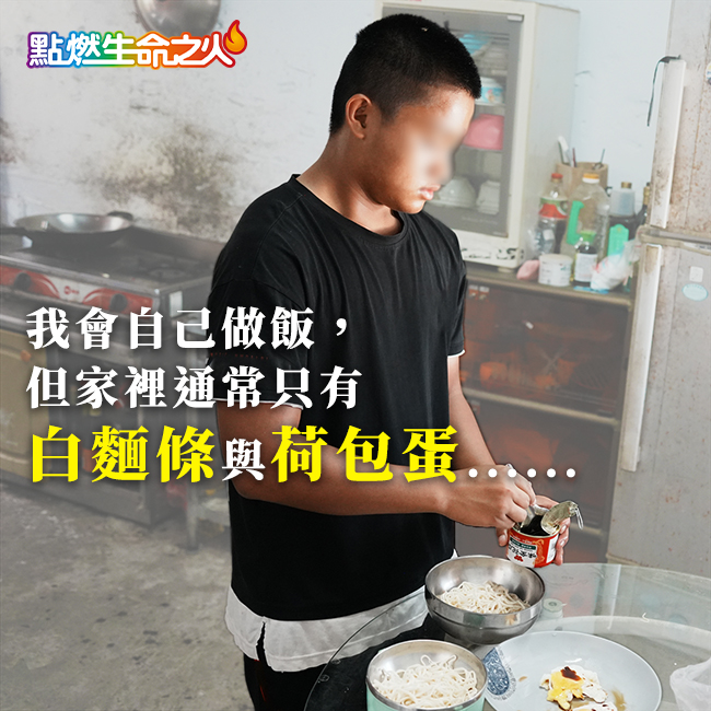 小歐心疼爸爸工作辛苦,總是省下爸爸給的餐費,肚子餓時會先翻冰箱加熱隔夜飯,或是自己煮麵條拌醬油,配荷包蛋與罐頭打發一餐。看孩子連吃個飯還要先擔心家裡有沒有錢?爸爸對於無法好好撐起這個家,經常自責地難過落淚…