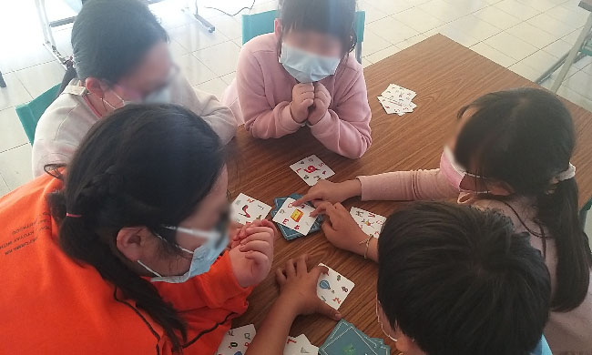 ▲講話都小小聲、個性很害羞的小彤(前排),內心其實有個願望是想交朋友、和同學玩…