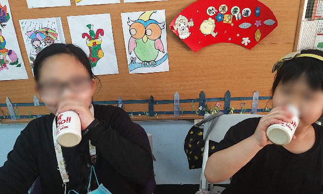 ▲ 小彤說:「社區會給我們很多好吃的東西喔!」透過志工穩定的陪伴與營養補充,小彤和剛來社區時的模樣相比,長高長胖了不少。