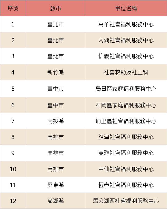 ⦿115年合作名單,依地理位置排序,共計7個縣市,12個單位