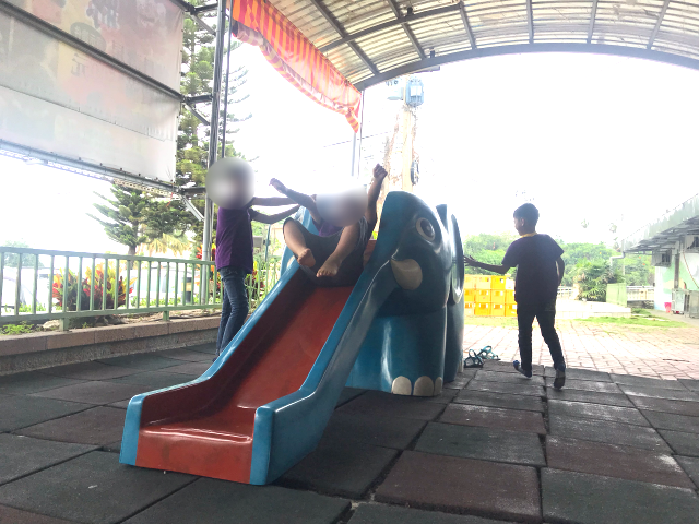 ▲阿鴻從溜滑梯上順溜而下,看起來好快樂!現在的他有很多朋友