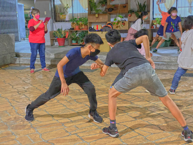 ▲小木(左)在社區基地常跟同伴玩過頭,不小心就跟對方起了衝突。