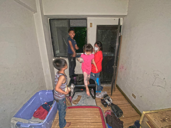 ▲媽媽不在家,孩子們爬高爬低到處玩耍,家裡的環境很需要清理。